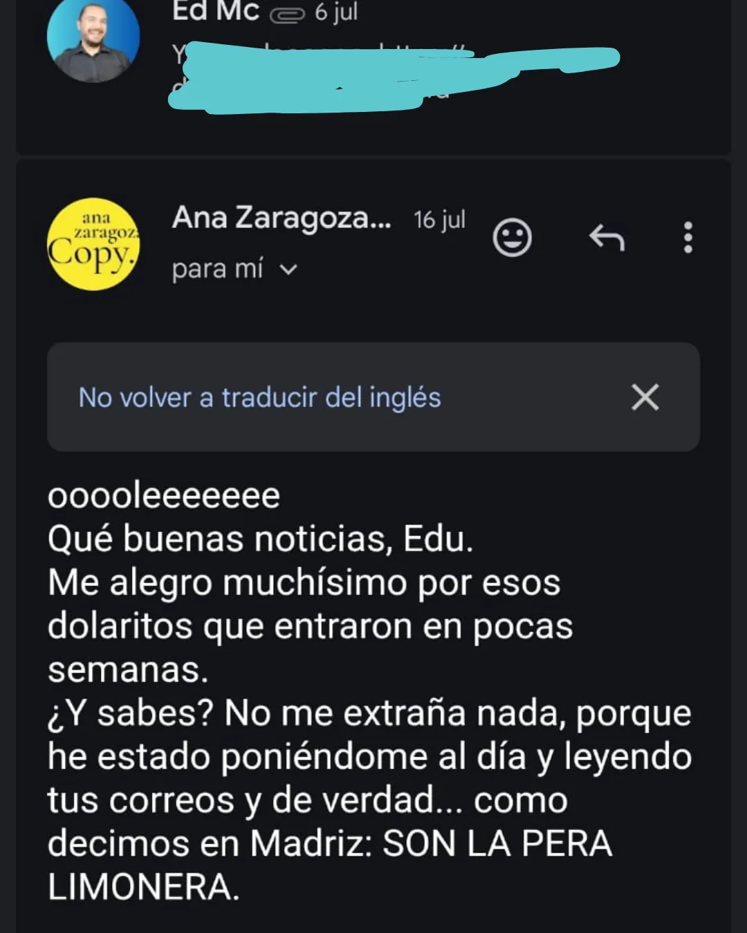 Eso me dijo Javier Quintero después de leer uno de mis correos.